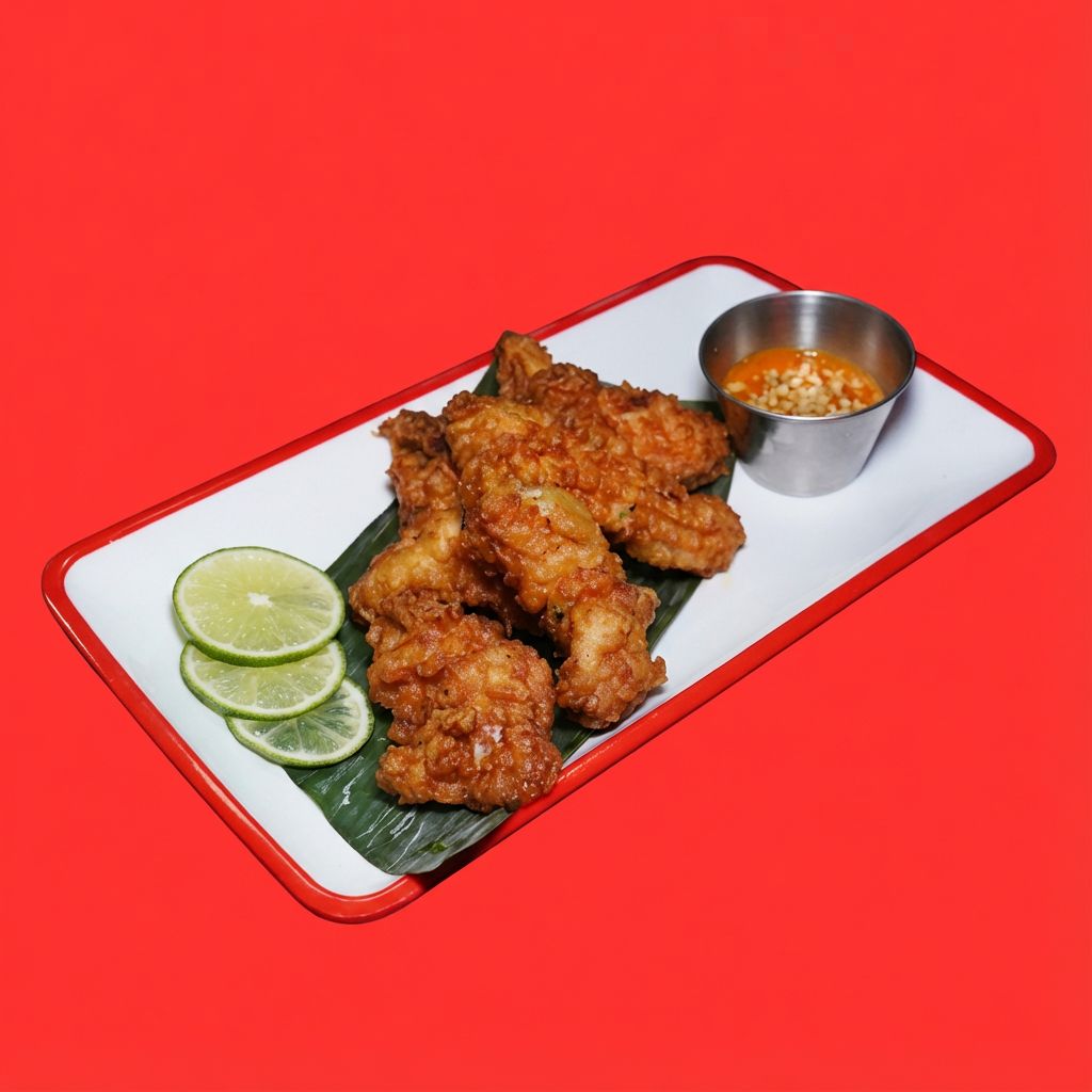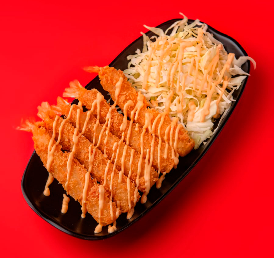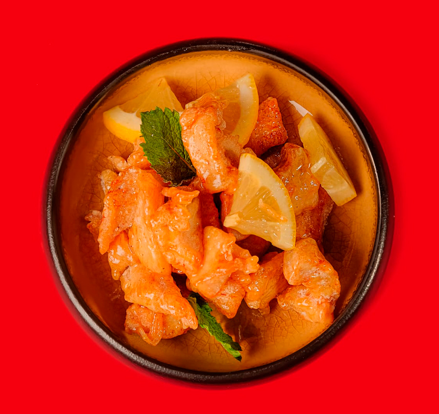 Bunbao de Pollo Crujiente con cebolla caramelozada, cheddar, nuestra salsa Emmy, semillas de wasabi y especias chinas